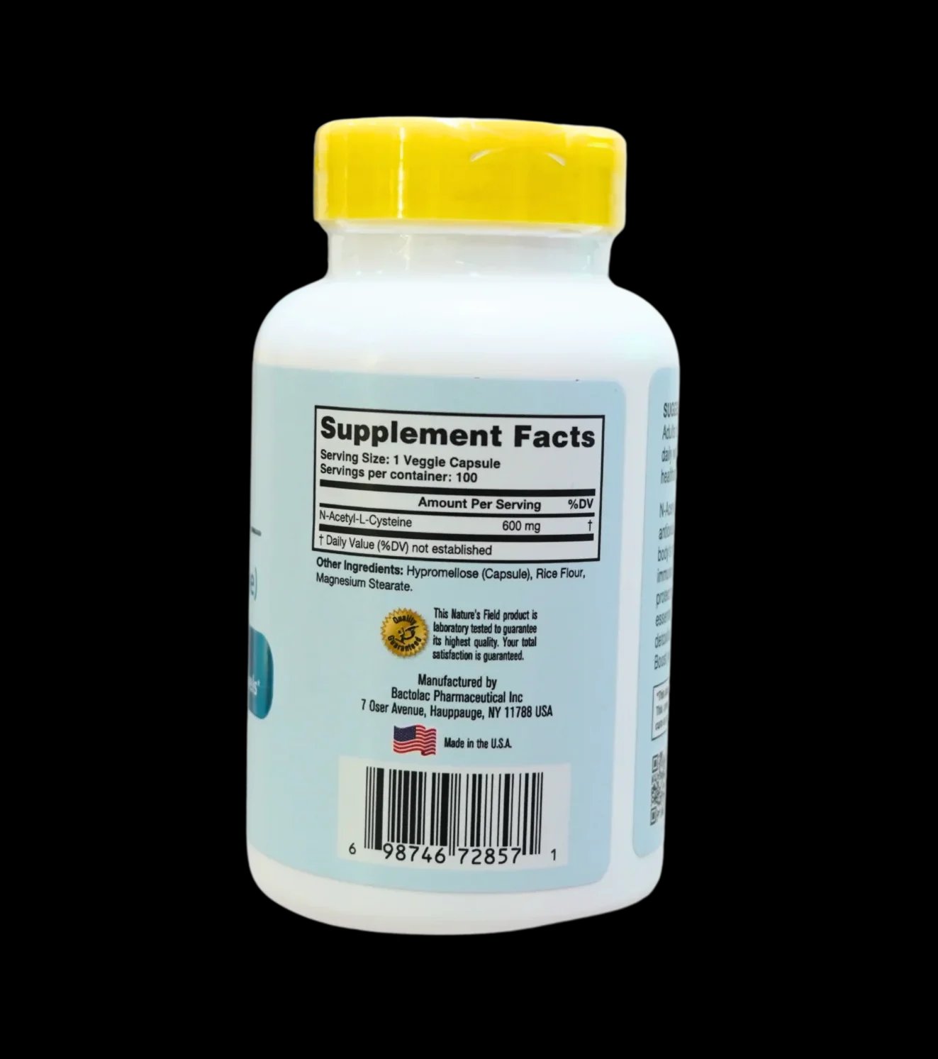 Nature’sfield N-Acetyl Cysteine (600mg) offers powerful antioxidant support, boosts immune function, respiratory health, and protects your cells from the harmful effects of oxidative stress.