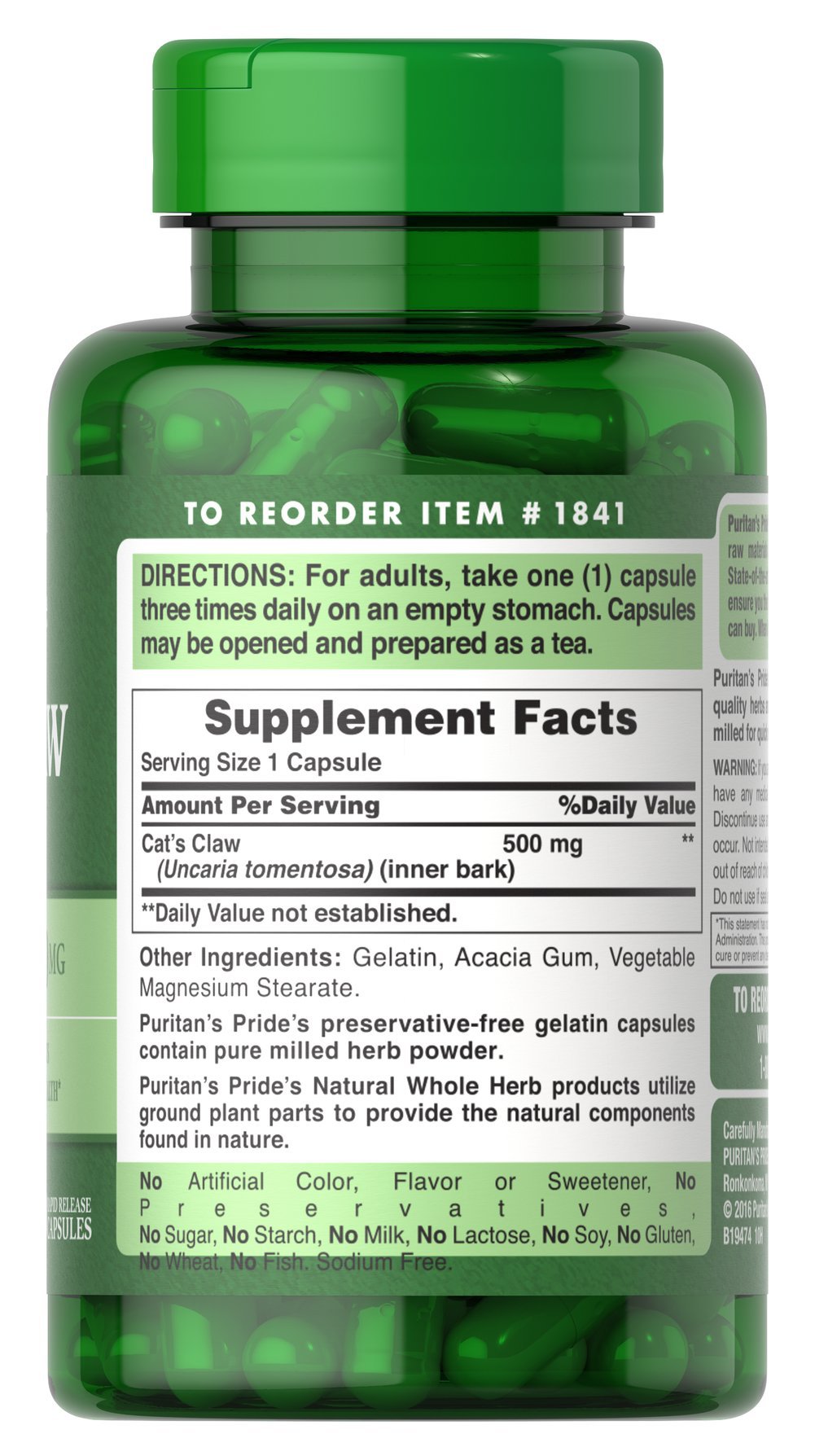 - Puritan’s Pride’s preservative-free gelatin capsules contain pure milled herb powder.