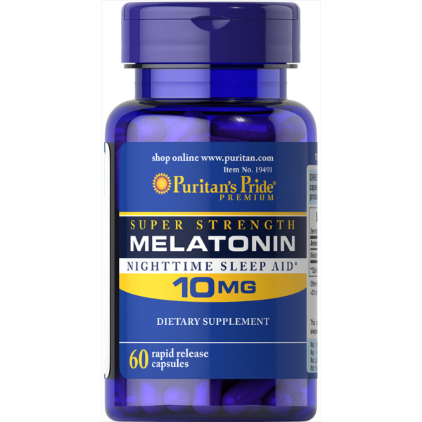 Puritan’s Pride® Super Stength Melatonin Nighttime Sleep Aid* 10 mg contains: 60 rapid release capsules.